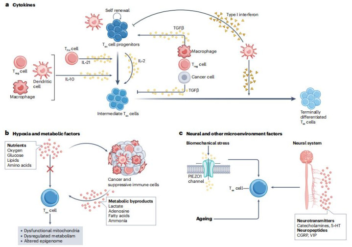 Tex细胞的命运深受其所在微环境的调控,主要来自以下几方面: