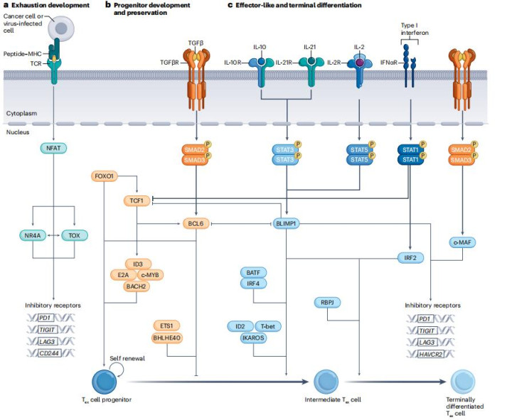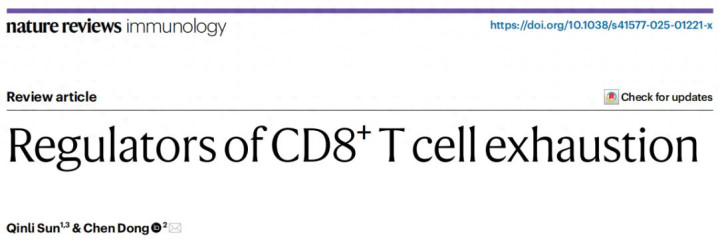 Nature Reviews Immunology近期发表的综述“Regulators of CD8+T cell exhaustion”系统梳理了这一领域的最新进展,揭示了从微环境信号到细胞内转录编程的多层次调控机制,并为开发新一代免疫疗法提供了方向。