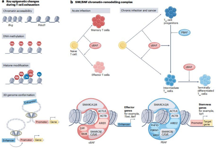 耗竭T细胞的染色质开放性、DNA甲基化、组蛋白修饰等发生持久性改变,形成“表观遗传记忆”,即使抗原清除后仍难以完全逆转。例如: