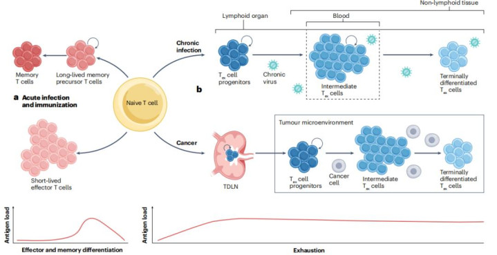 持续性抗原刺激是驱动耗竭进程的核心因素。相比之下,低亲和力抗原或可控强度的TCR信号则有利于前体Tex细胞的维持与自我更新。